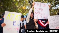 Бүгүн, 13-октябрда "Азаттык Медиа" мекемесинин Бишкектеги кеңсесинин алдына адамдар чогулуп, "Азаттык", Клооп, "Кактус Медиа" маалымат каражаттарынын жабылышын, бейөкмөт уюмдардын ишинин токтотулушун талап кылышты.