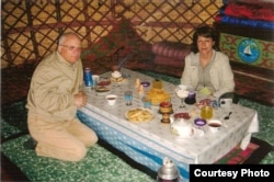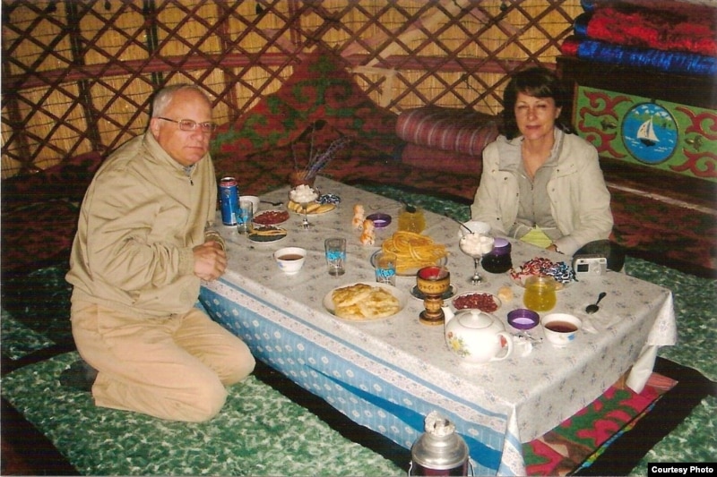 Элчи Ален Куланоң көл кылаасында жубайы Мартина менен, 2008-ж.