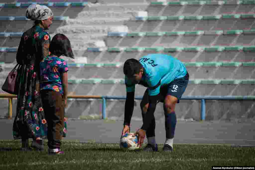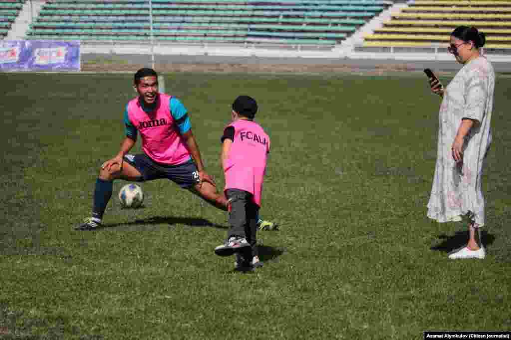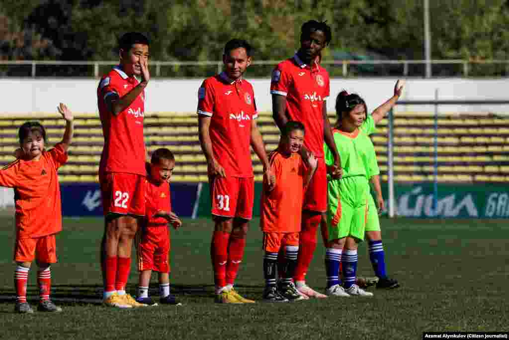 Балдар беттештен бир күн мурун ата-энелеринин коштоосунда стадионго келип, футболчулар менен таанышып, топ ойношту.