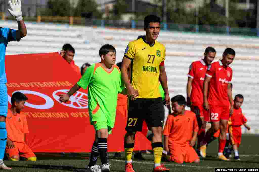 “Алай” жана “Алга” командаларынын Оштогу беттешинин алдында футболчулар оюн талаасында "Күн балдарынын" (даун синдрому) коштоосунда чыкты. Фотоблогер Азамат Алымкулов тарткан сүрөттөрдү сунуш кылабыз. Ата-энелерден, балдардан жана уюштуруучулардан уруксат алынган.