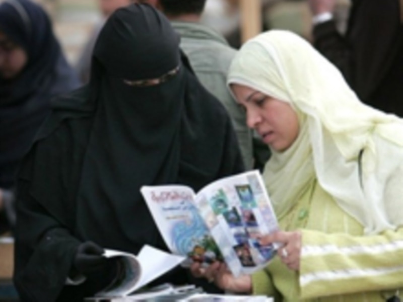 Египеттик аялдар Араб дүйнөсүндө эң чоң эсептелген Каирдеги китеп жарманкеде. 2-февраль 2007